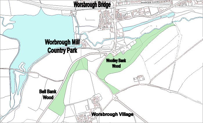 BELL BANK WOOD BARNSLEY Bell Bank Wood comprises a narrow belt of woodland, located along the eastern side of the A61 Sheffield to Barnsley road. The wood lies approximately 3 kilometres south of the centre of Barnsley and close to Worsbrough Mill and, along with nearby Woolley Bank Wood, forms part of Worsbrough Mill Country Park.