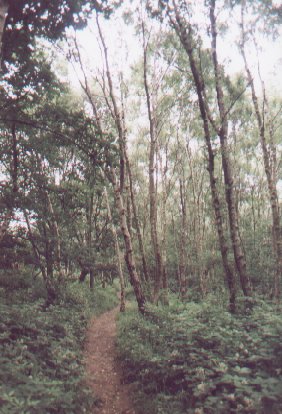 area to the left of the path is dominated by Oak whilst that to