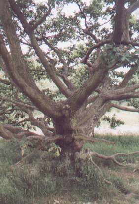 branches of twisted Oak trees such as this one near the summit