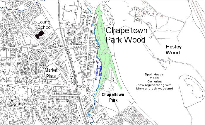 The Woodlands of Chapeltown A continuous sweep of woodlands dominates the skyline along a five kilometre stretch of the west facing slope on the boundary between Sheffield and Barnsley between Tankersley and Thorpe Hesley. It provides an extremely important landscape feature and shelters Chapeltown from the intrusion of the heavy traffic on the M1 and the Stocksbridge bypass. Three sections of this woodland, Newbiggin Plantation, Thorncliffe Wood and Chapeltown Park Wood, are managed as heritage woods under the Fuelling a Revolution project. There could be no more appropriate candidates for inclusion in the project for they have been integral in the industrial developments of the area since the earliest times. With its long history of iron working and coal mining the whole area was subject to high levels of pollution of all kinds. Spoil heaps and pits scarred the landscape, railway lines crisscrossed the historic woods, aerial ropeways clattered overhead with spoil or coal and the air was choked with the smoke and emission from the coking and chemical works. With the closure of the pits and the demise of heavy industry, however, the woodlands are recovering and areas which were once heaps of black spoil are covering with regenerated vegetation and are becoming valuable wildlife habitats. Unfortunately the pronounced humps and hollows which characterise the coal workings in the local woods are very attractive to motorbike and BMX cyclists whose activities tend to wreck the ground flora and churn the woodland floor into thick black mud. The area boasts a great variety of habitat types. There are wetlands beside the Charlton and Blackburn Brooks and ponds which were former industrial reservoirs and millponds, including an extremely unusual area of mature willow carr beside Thorncliffe Pond. These areas could have high amenity value to local people but much restoration still needs to be done to bring them to an acceptable standard. Since the major primary industrial activities of coal mining and iron working ceased some thirty years ago the Chapeltown area has changed considerably with much new house building, so that it is fast becoming a major dormitory suburb serving Sheffield and Barnsley. There is no doubt that the regeneration of the woodland environments around Chapeltown will be an extremely important factor in improving the standard of living for the local community. |