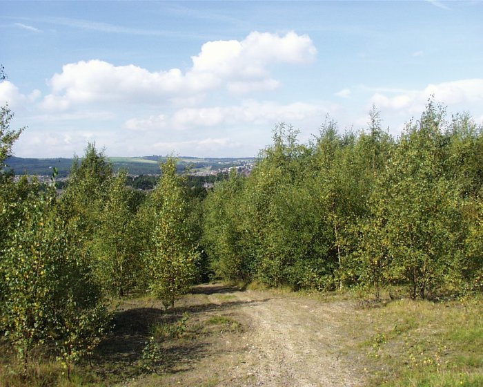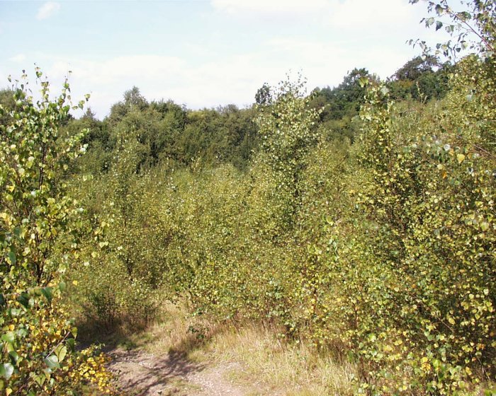 AREA OF NATURAL REGENERATION and SUCCESSION There are a number of unofficial footpaths leading into the woodland at the top of the park which lead onto the disused spoil heaps of Hesley Wood. Surprisingly these are some of the most beautiful and fascinating landscapes in the area! These old black tips show the effect of the natural succession of vegetation on these thin acid soils for they are rapidly becoming covered with birch woodland which is, in turn, providing cover for oak saplings to flourish. The wildlife here is especially interesting with a wide variety of birds and insects on the rich plant life, including sparrowhawks and hares. There is even a wet area with a patch of phragmites reeds. The views from the top are stunning and the footpaths dry.